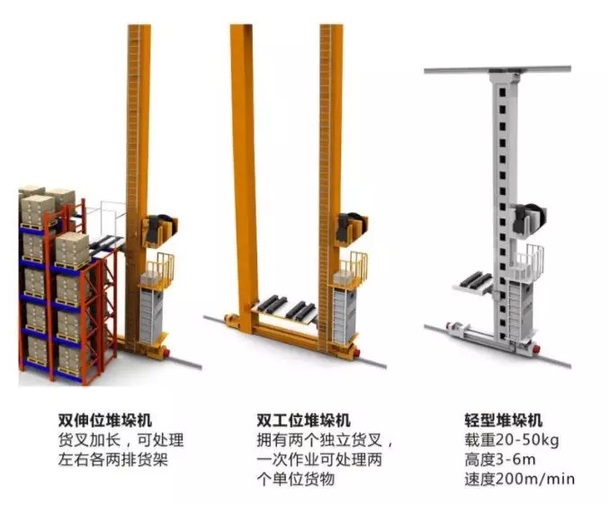 按照有无导轨可分为有轨堆垛机和无轨堆垛机